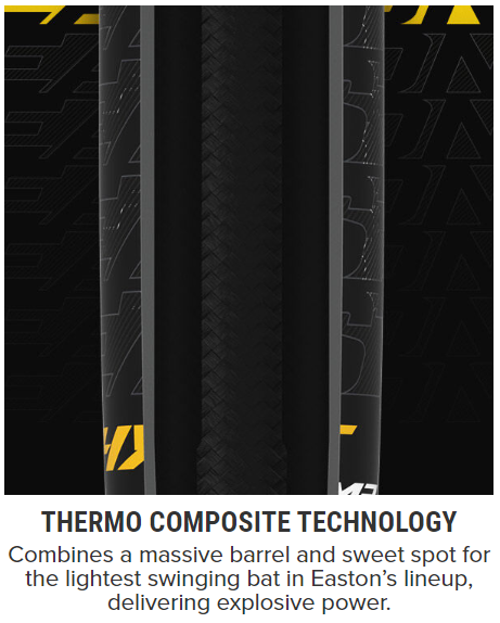 Thermo Composite technology combines a massive barrel and sweet spot for the lightest swinging bat in Easton’s lineup, delivering explosive power |