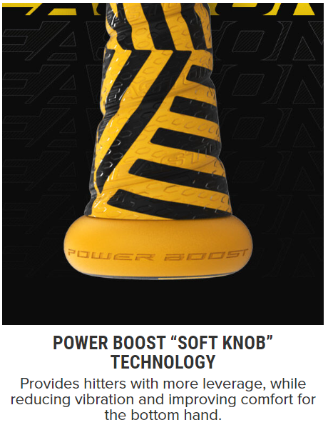 Power Boost “Soft Knob” technology provides hitters with more leverage while reducing vibration and improving comfort for the bottom hand |