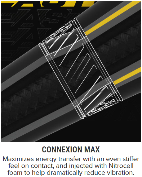 ConneXion Max maximizes energy transfer with an even stiffer feel on contact, and it’s injected with NitroCell foam to help dramatically reduce vibration |