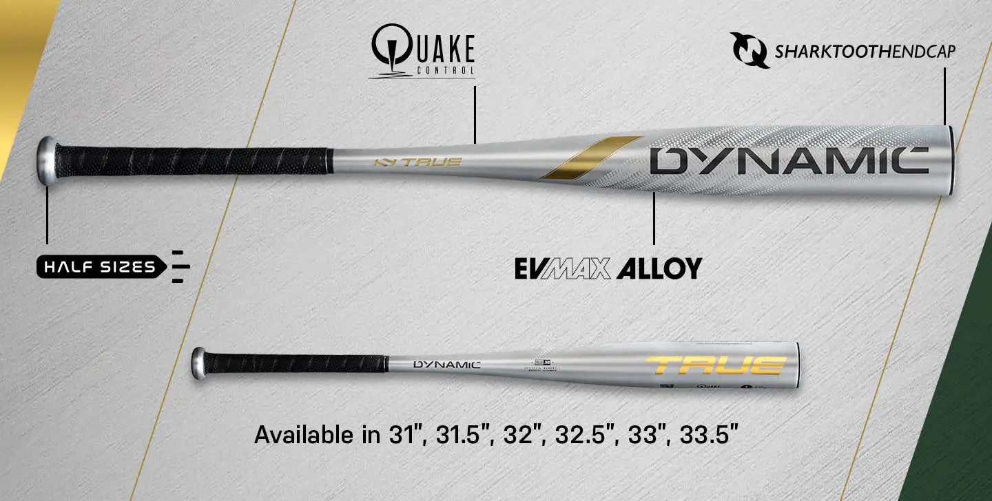 Introducing the DynamicTM BBCOR — True Temper Baseball’s first perfectly balanced, One-Piece Alloy bat. DynamicTM is designed for the hitter looking for increased bat speed, an expanded sweet spot for better feel on contact, and maximum pop on every swing. This is not your average One-Piece Alloy, this bat features our exclusive Quake Technology, a vibration dampening system in the handle for improved feel on contact and reduced sting on mishits. Whether you are at the plate with the game on the line or crushing hit after hit in the cage – the DynamicTM (-3) BBCOR bat will deliver maximum performance on every swing, every time.