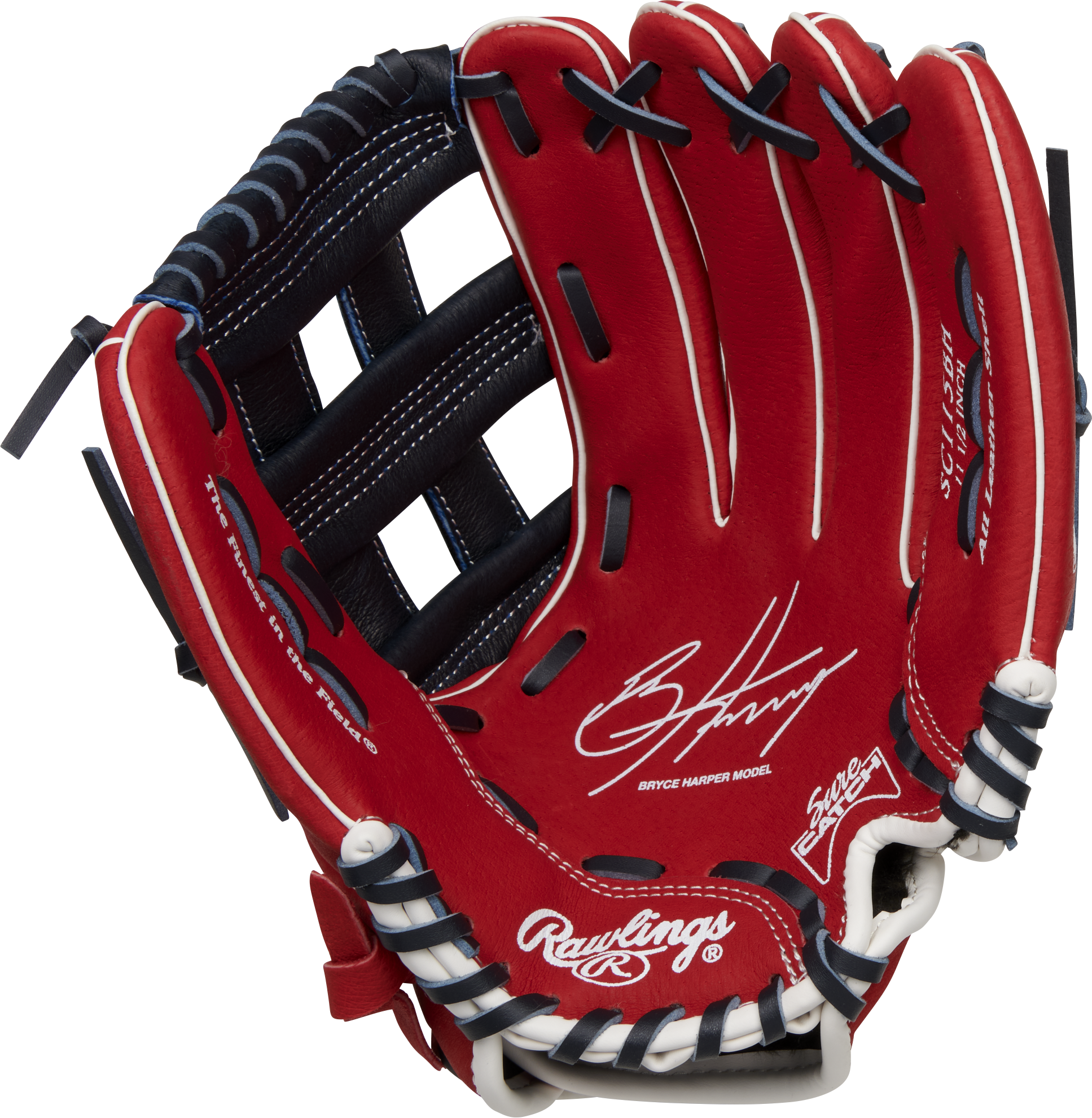 The Rawlings Sure Catch™ 11.5-Inch youth infield/outfield glove is constructed with a soft, all-leather shell for enhanced durability and pocket shape retention. Its Sure Catch heel cut out design allows for a quick and easy close making it perfect for young athletes who need a glove that’s game-ready off the shelf. Additionally, the cushioned finger linings offers added comfort and features a Velcro wrist strap for a custom fit. Bryce Harper Signature Model. Get yours today!