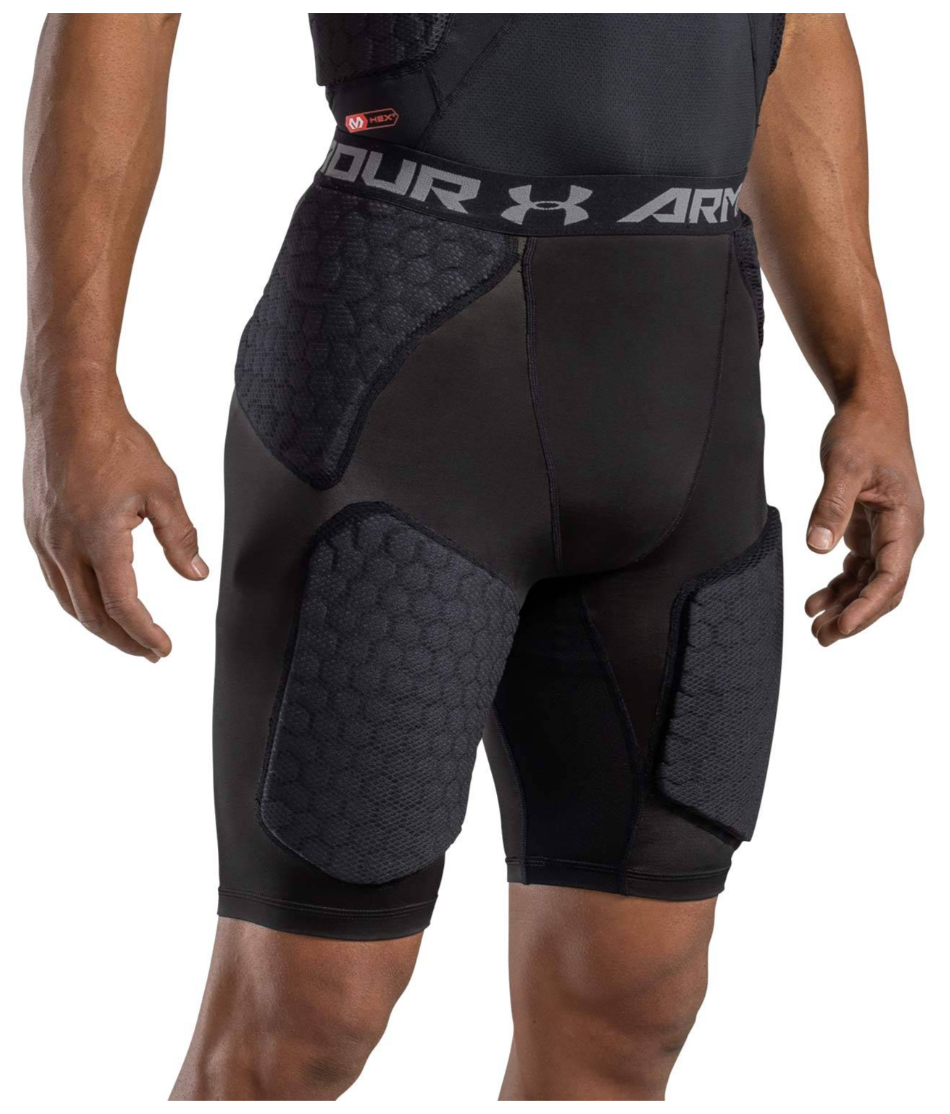 The Under Armour Gameday Armour 5-Pad Adult Football Girdle features patented McDavid Hex technology to provide superior protection while allowing you to move freely and comfortably. Moisture Transport System wicks sweat and keeps you dry. Compression fit HeatGear supports the muscles and strategic mesh panels deliver ventilation. Sewn in hip, thigh and tail pads plus cup pocket.