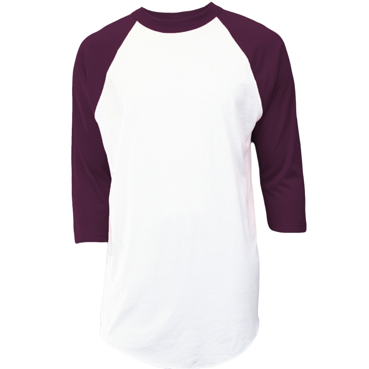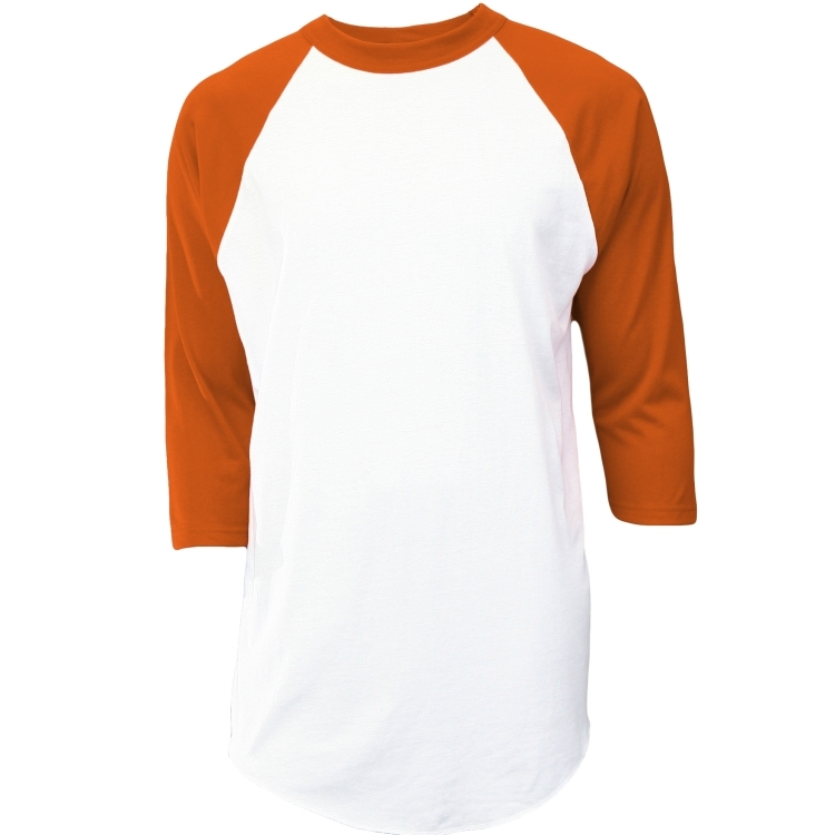 - White body with 3/4 length contrasting color sleeves